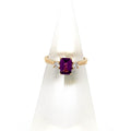 GARN5 - 18kt YG Octagonal Purple Garnet and Round Diamond Three Stone Ring